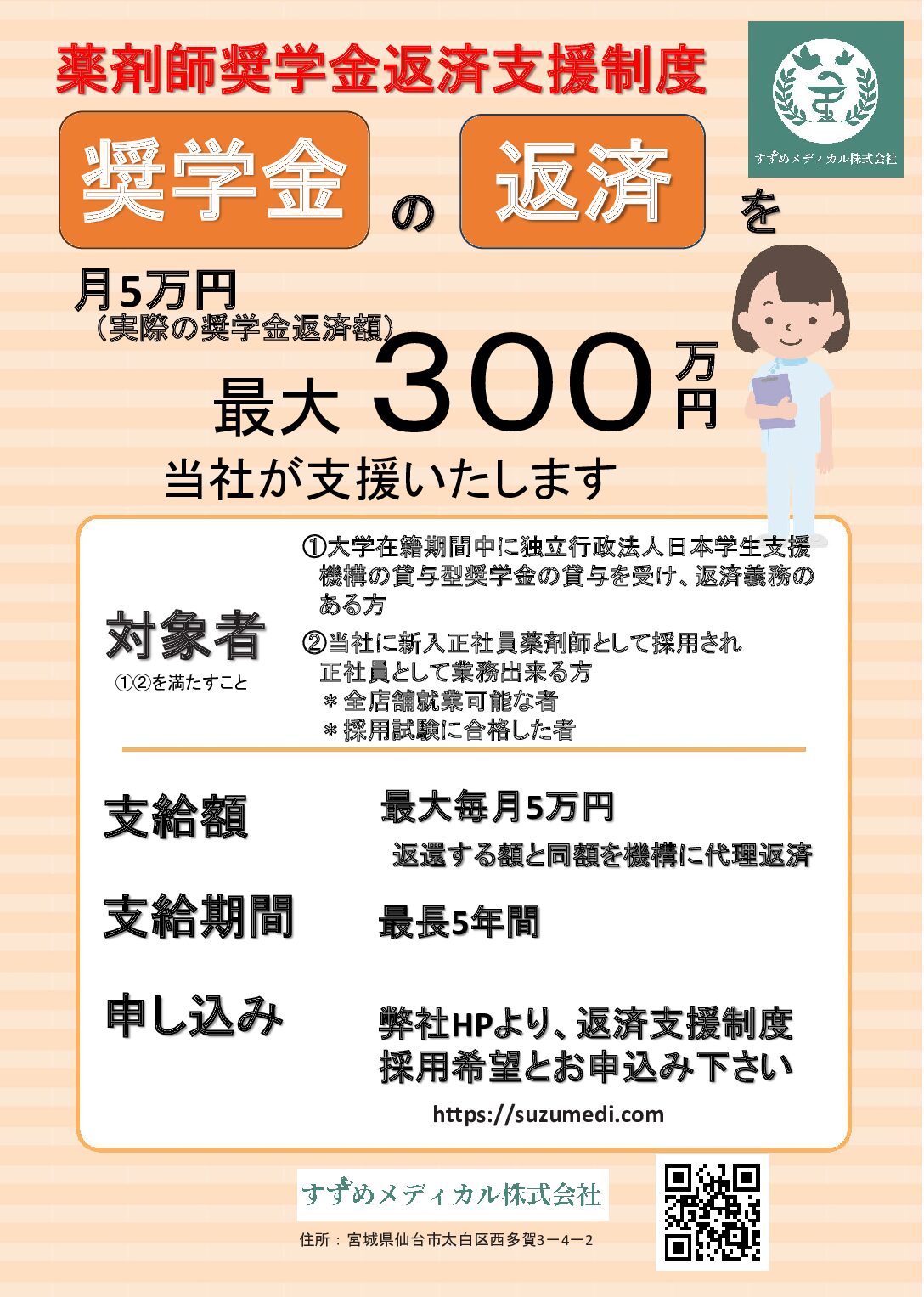 2027年卒・新卒薬剤師・奨学金返済支援制度のおしらせ