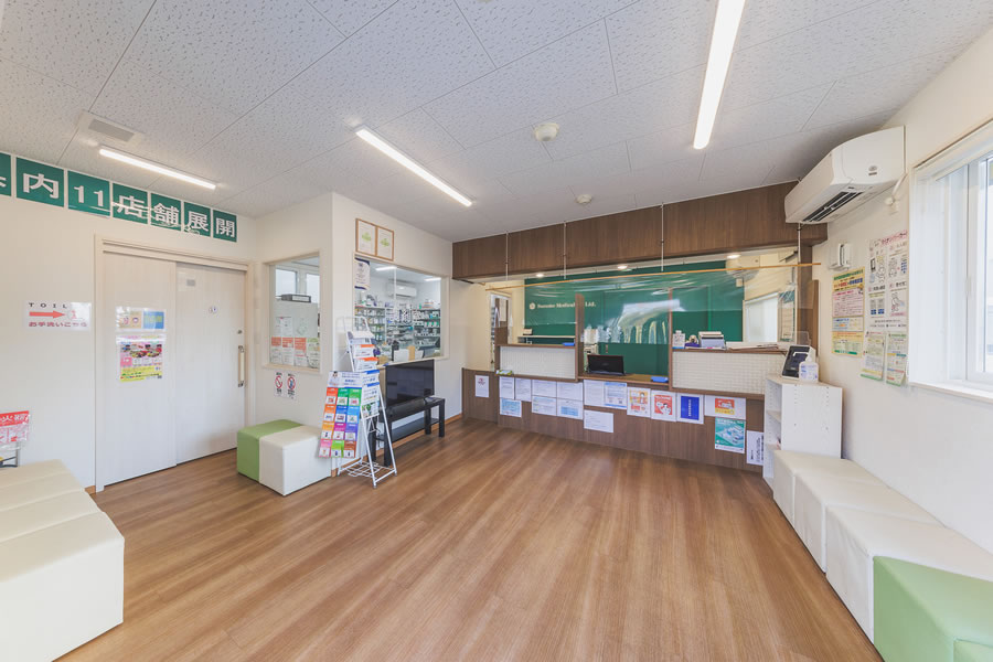 築館インターからで8分ほどの、築館伊豆町内・七十七銀行築館支店様の隣に位置しています。主に近隣の小児科の処方箋を受け付けております。お車でお待ち頂きお薬受取口よりお薬を受け取ることができます。