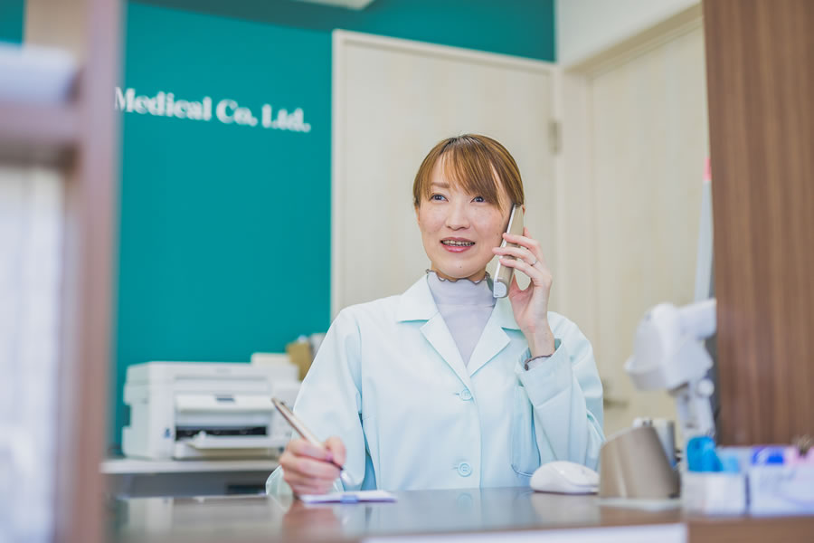 調剤事務の仕事は処方箋の受付から入力・電話対応・レセプト作成・医薬品の検品作業等、多岐にわたります。直接患者さんと接する受付や電話対応では患者さんに合わせて声の大きさやトーンを変えて聞きとりやすいように心掛けています。